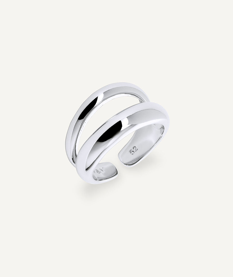Anillo dúo abierto Allure bañado con una gruesa capa de Plata de ley 925, lo que garantiza una mayor durabilidad. Está disponible en dos tallas: la talla 12-14, con un diámetro interior de 16,5 mm a 17,2 mm, y la talla 16-18, con un diámetro interior de 17,8 mm a 18,4 mm.