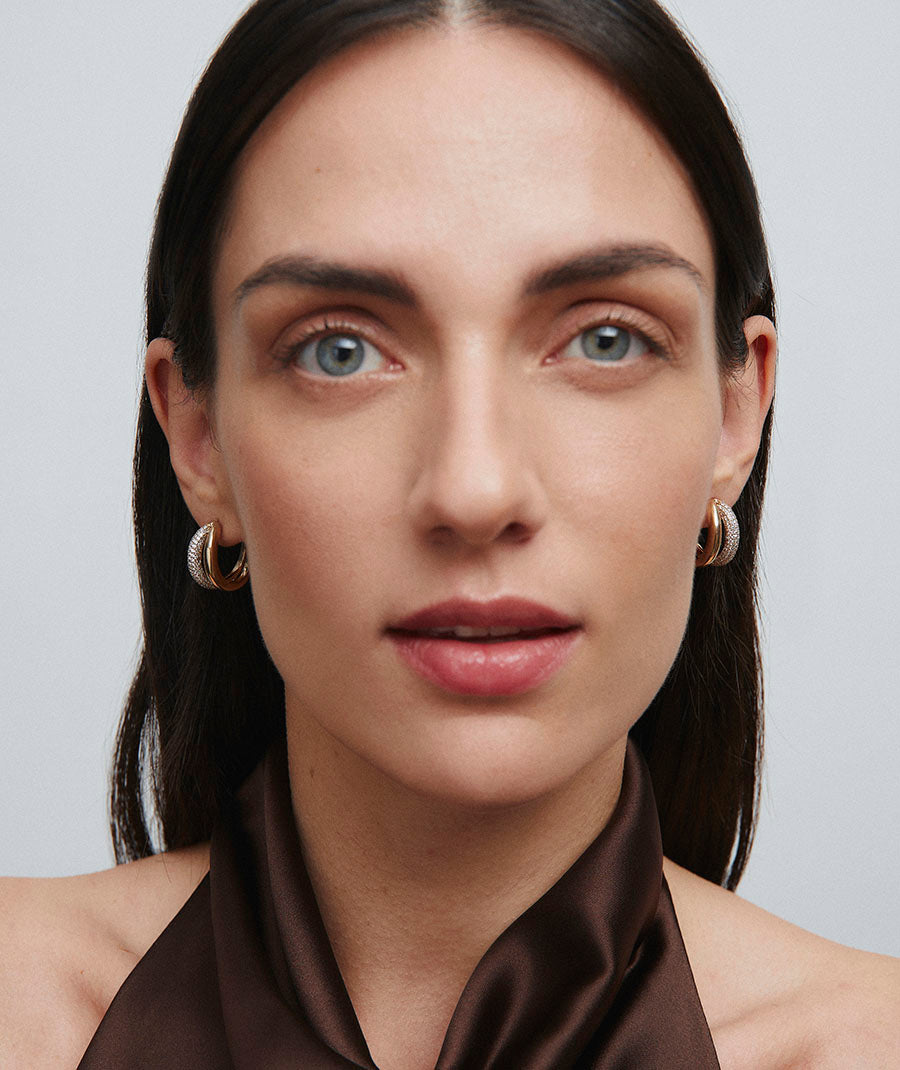 De la colección Elegance, con piezas que combinan volumen y movimiento para realzar cualquier look de celebración. Su línea Allure reinterpreta esta esencia en clave minimalista, jugando con el contraste entre superficies lisas y brillantes en pavé. Una cápsula exclusiva para las fiestas, que invita a cada mujer a encontrar ese detalle especial con el que sentirse única en Navidad.